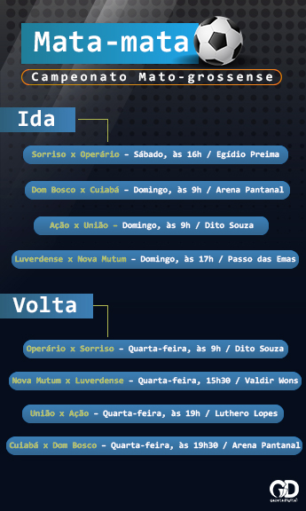 O mata-mata do Campeonato Mato-grossense começa neste final de semana. A Federação Mato-grossense de Futebol divulgou a tabela detalhada com as datas, horários e locais das quartas de final do estadual.