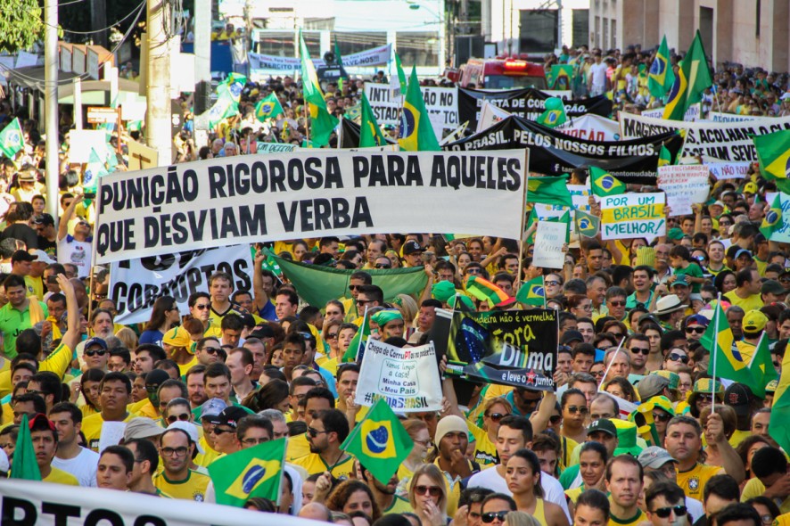 Milhares de manifestantes foram às ruas de Cuiabá, neste domingo (15), para protestar contra o Governo da presidente Dilma Rousseff (PT). A estimativa da Polícia Militar é de que 20 mil pessoas entoaram gritos pedindo a saída da petista. Mas de acordo com a organização “Movimento Muda Brasil”, mais de 35 mil estiveram no protesto, que se deu início na Praça Alencastro rumo à Praça do Choppão. Nenhuma ocorrência foi constatada de acordo com a PM.
