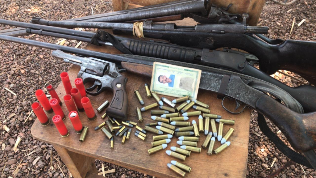 Cinco armas foram apreendidas e um homem preso após a Policia Militar e a equipe do Ciopaer localizada um veículo abandonado na região do Linhão de Várzea Grande. O caso ocorreu no último dia 3, numa ação conjunta da Polícia Militar e Ciopaer.