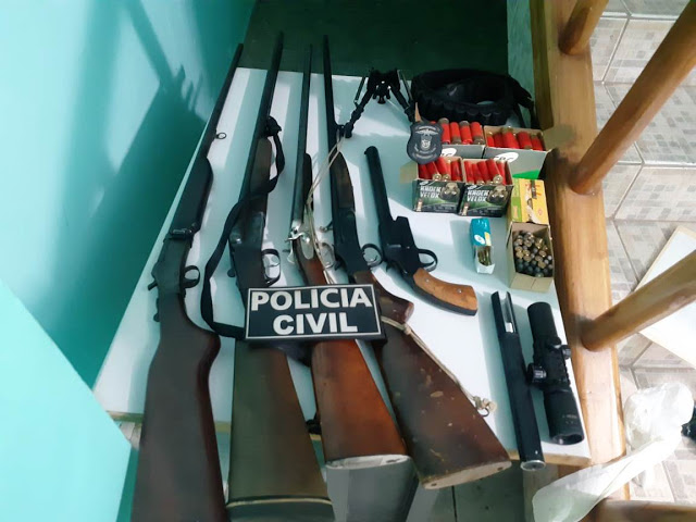 No total foram retirados de circulação 1 espingarda calibre .12 cano duplo, 01 espingarda calibre .28 cano duplo, duas espingardas calibre .32 e no final da ação ainda foi apreendido uma arma de fabricação artesanal calibre .16 em porte de um segundo suspeito. Também foi apreendida uma quantidade enorme de munições.