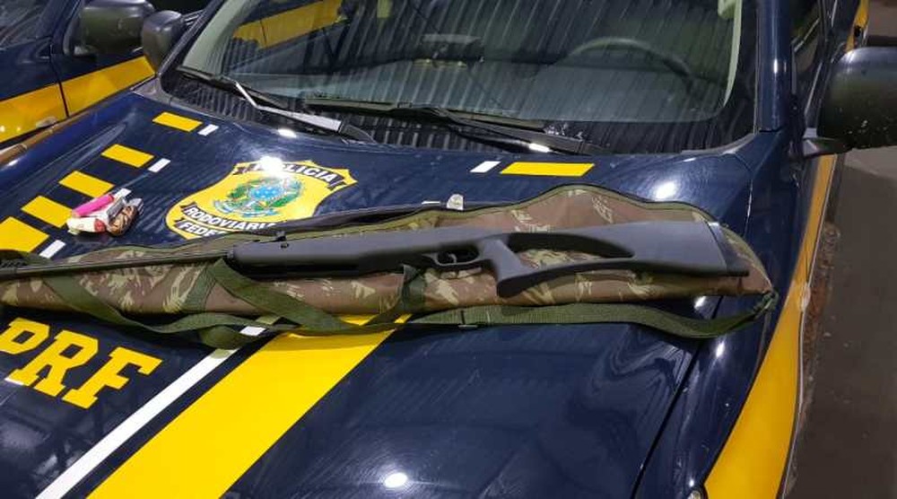 Ao encontrar o suspeito, a equipe começou o acompanhamento tático até a entrada de um matagal, quando ele abandonou o veículo na tentativa de se esconder na mata. Os policiais encontraram o homem que também portava uma carabina de pressão e um canivete.