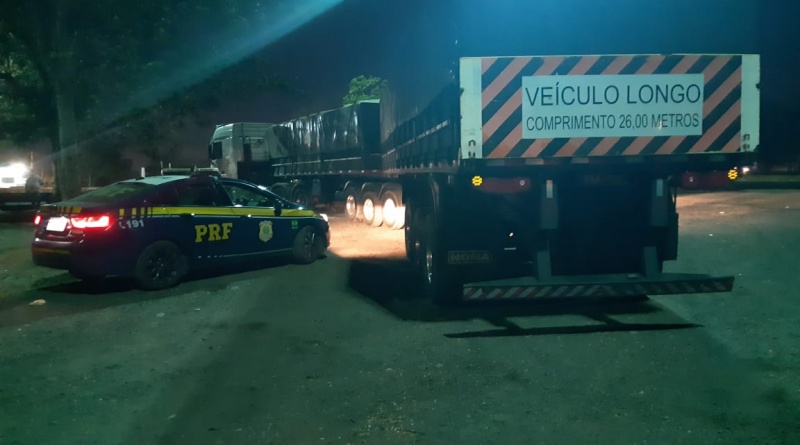 Na madrugada de domingo (08), por volta de 1h20, a Polícia Rodoviária Federal (PRF), sempre atenta aos detalhes para garantir um trânsito seguro, visualizou um caminhão de grandes dimensões trafegando em horário não autorizado, na BR-364, município de Jangada/MT.