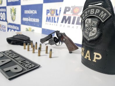 Em Peixoto de Azevedo (691 km de Cuiabá), policiais do Grupo de Apoio (GAp) do 22º Batalhão de Polícia Militar prenderam um homem de 46 anos por porte ilegal de arma. Ele levava na cintura um revólver calibre 38 com seis munições intactas.