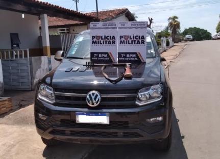 A equipe foi informada do roubo a uma residência, ocorrido na noite anterior e os quatro criminosos levaram dois veículos, sendo um deles uma caminhonete VW Amarok, com sistema de rastreamento.