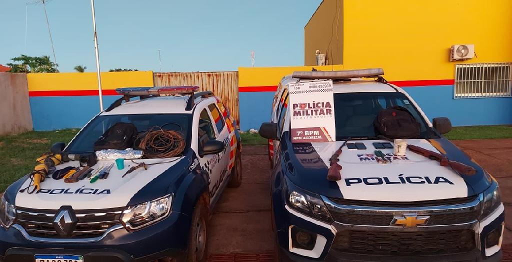 O suspeito confessou que tinha mais um outro participante e que as ferramentas que seriam utilizadas no furto estariam em uma propriedade rural na entrada do município de Acorizal.