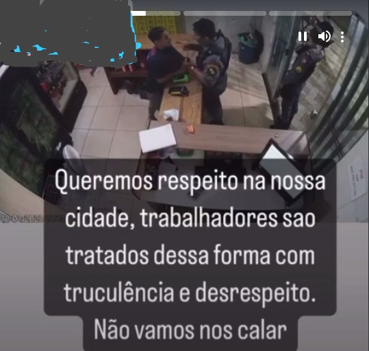 Um vídeo que circula nas redes sociais mostra um policial militar puxando a camisa do funcionario jovem trabalhador da distribuidora de bebidas e batendo no balcão de uma forma agressor, dizendo que o som estaria muito alto.