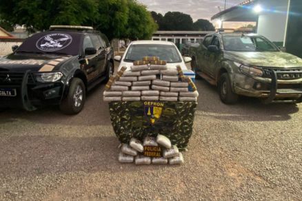 Forças policiais apreenderam 43 tabletes de maconha e pasta-base de cocaína na madrugada de segunda-feira (19) dentro de um carro da Prefeitura de Rio Branco (MT), durante uma operação na BR-174, em Cáceres (218 km de Cuiabá).