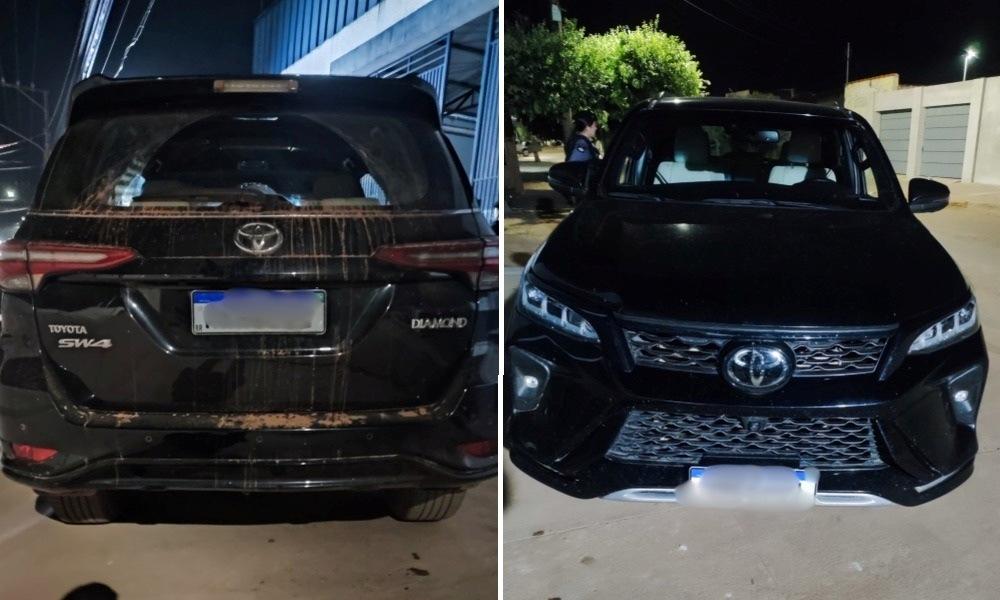 A ação aconteceu por volta das 22h30, na Avenida Marechal Rondon, após informações do serviço de inteligência apontarem que uma Toyota Hilux SW4 preta, com placas do estado do Rio de Janeiro, estaria transitando com possível adulteração veicular.