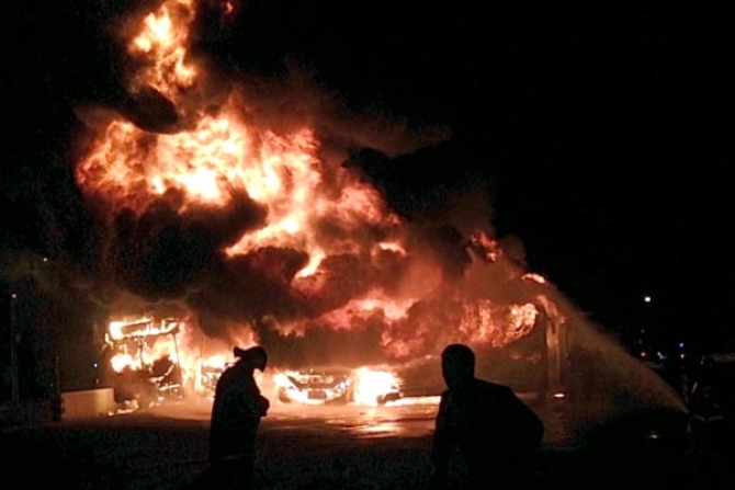 As chamas começaram por volta das 22hs em um dos ônibus, se alastrarando rapidamente para os demais e ganhando grandes proporções.