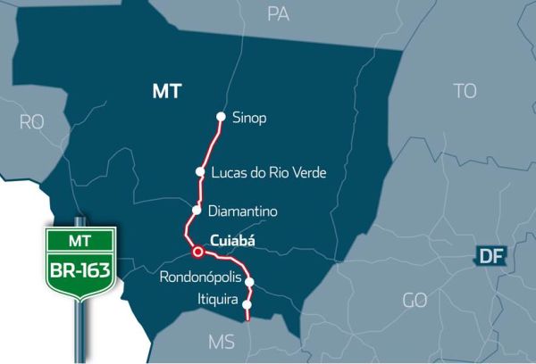 As praças de pedágio de Rondonópolis (1º lugar) e Sorriso (2º lugar) são as que têm o maior fluxo de veículos e por isso recebem um repasse de ISS maior referente à receita arrecadada. Já os municípios do trecho norte da BR-163, como Nova Mutum e Diamantino, e da BR-364, como Rosário Oeste, estão no topo do ranking devido às obras de recuperação do pavimento realizadas nessa região.