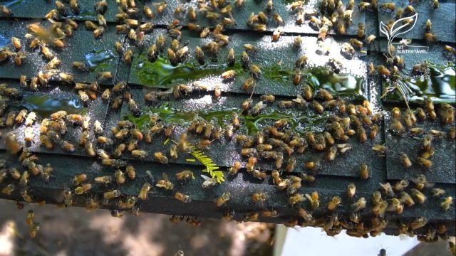 “Eu tenho aproximadamente vinte espécies de abelhas nativas sem ferrão. Eu comecei por hobby, mas hoje vejo a importância que tem para a contribuição com o meio ambiente e com a preservação dessas abelhas”, diz o meliponicultor.