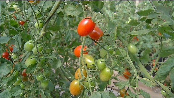 Ao todo são 5,8 mil pés de tomate-cereja plantados em vasos com terra tratada e mais um composto de pinos e turfas. Esse tipo de cultivo é o mais indicado porque evita algumas doenças de solo.