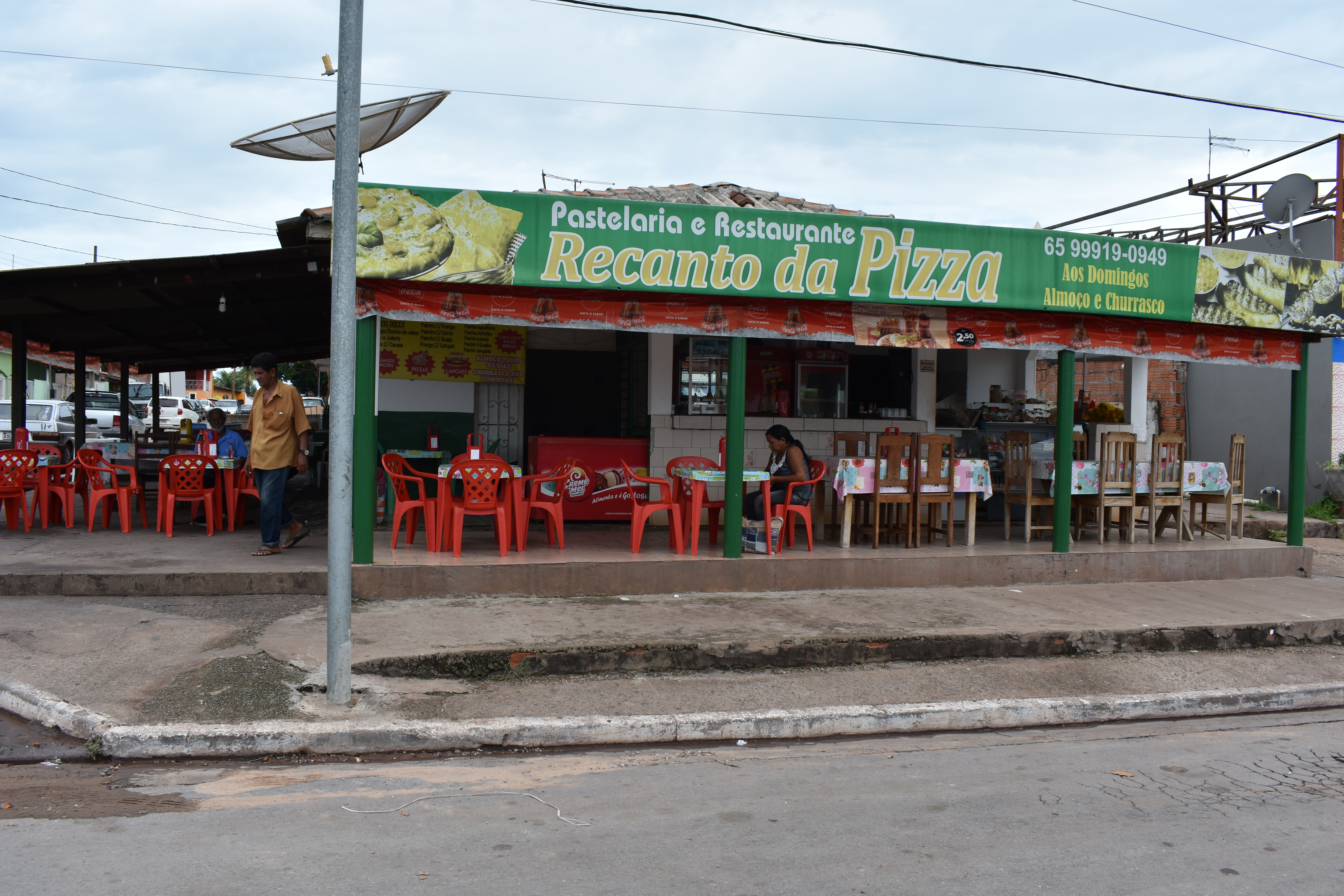 A pastelaria e restaurante Recanto da Pizza, salgados, lanches, pizza, serve almoços todos dias da semana, no domingo com churrasco.