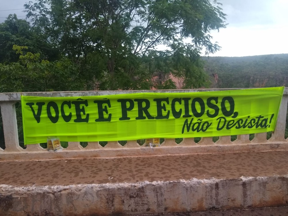 Uma família colocou uma faixa com uma mensagem motivacional na mureta de proteção do Portão do Inferno, um dos maiores cartões-postais de Chapada dos Guimarães, a 65 km de Cuiabá. A mensagem diz: “Você é precioso, não desista”. No ponto turístico é comum o registro de casos de suicídio.