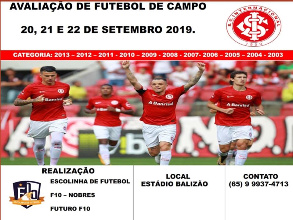 O Internacional fará avaliação técnica nos dias 20, 21 e 22 no Estádio Balizão em Nobres, para todos os interessados em participar das categorias. A peneira colorada acontecerá , a partir das 9h.