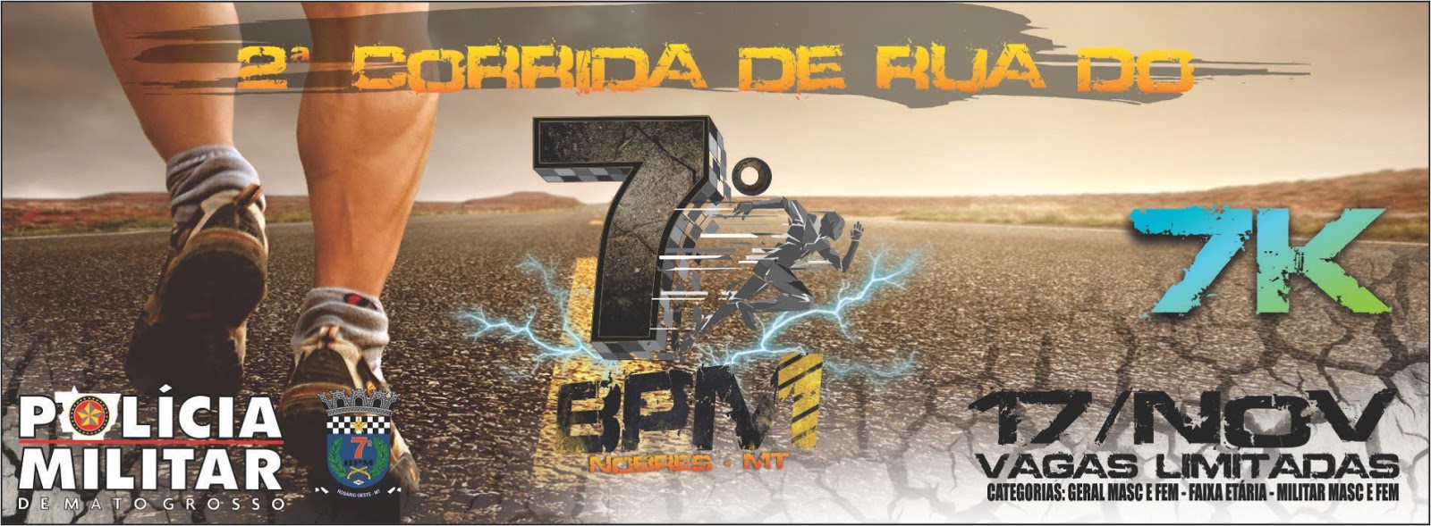 1.1 A Prova, 2ª Corrida de Rua do 7° Batalhão de Polícia Militar, será realizada na cidade de Nobres - MT, no dia 17 de Novembro 2019 as 7h00min da manhã.