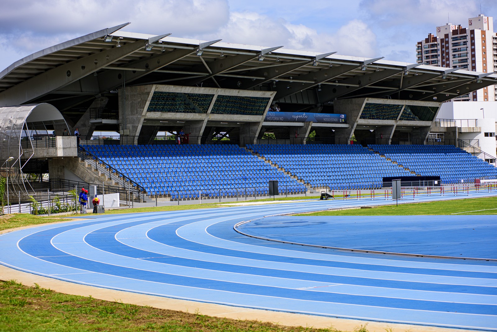 O complexo esportivo conta com uma pista de atletismo, construída seguindo padrão internacional estabelecido pela Confederação Brasileira de Atletismo (CBAT), um campo de futebol que possui quatro torres de iluminação com refletores, além de banheiros, inclusive para pessoas com deficiência, salas de aula, camarotes, lanchonete, sala antidoping, auditório, elevador com acessibilidade e um mirante.
