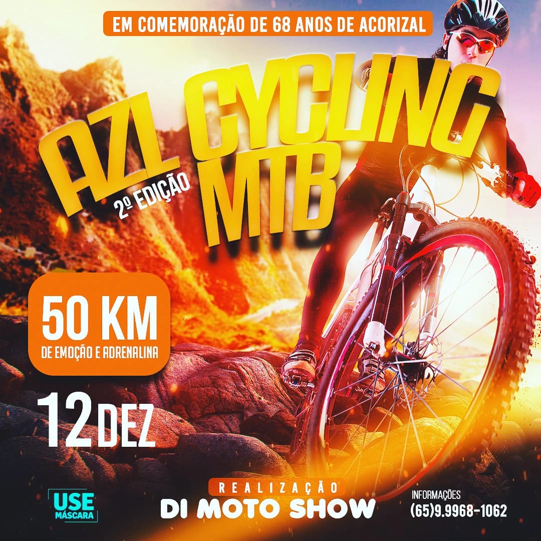 AZL 2ª edição do Cycling MTB está confirmado, em comemoração aos 68 anos do município de Acorizal. Os participantes terão pela frente 50 km de emoção e adrenalina de percurso. As inscrições estão abertas, com vagas limitadas e poderão ser feitas até dia 10 de novembro, com taxa de R$ 100.