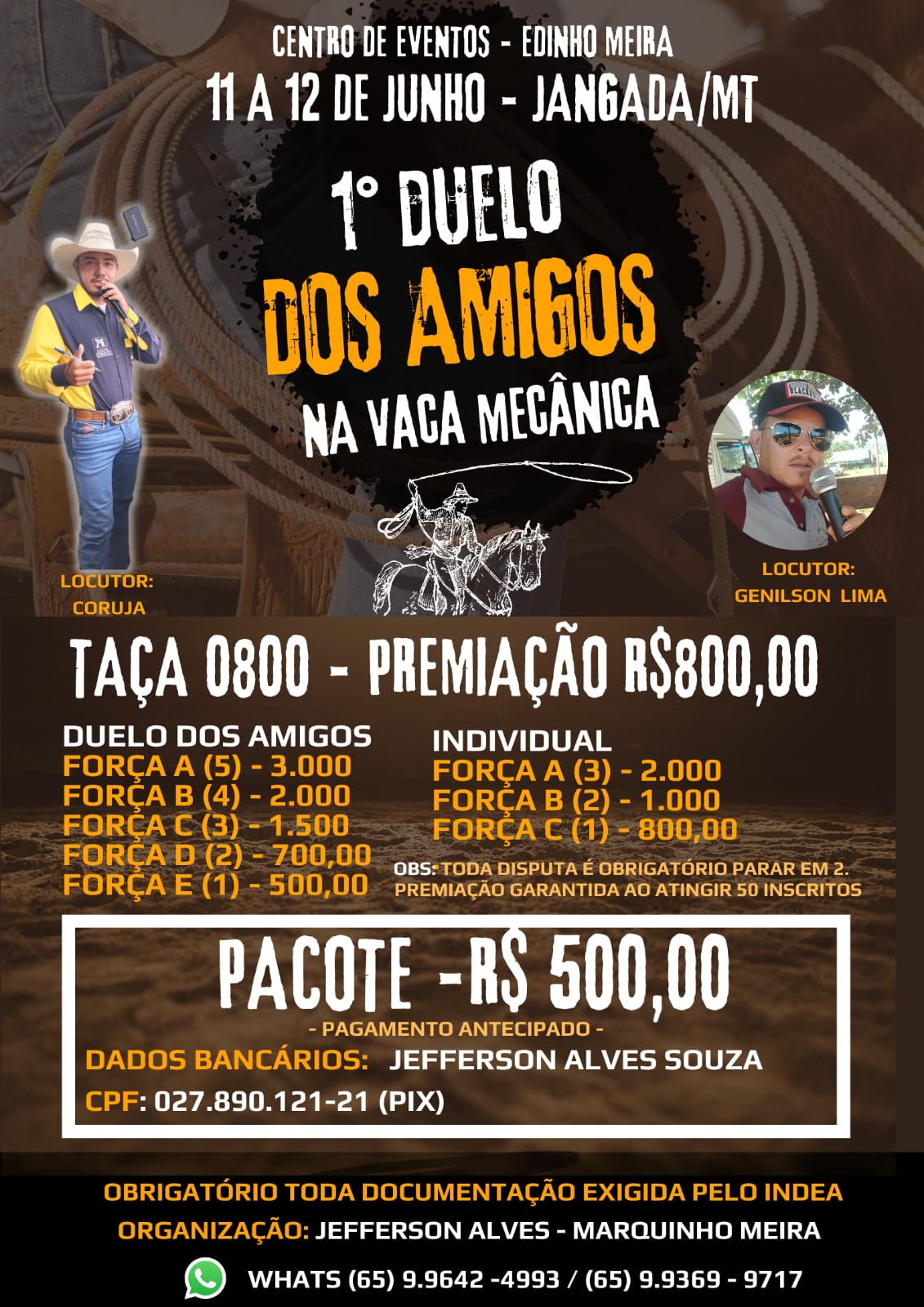 Vem ai, em Junho! 1º Duelo dos Amigos na vaca mecânica em Jangada