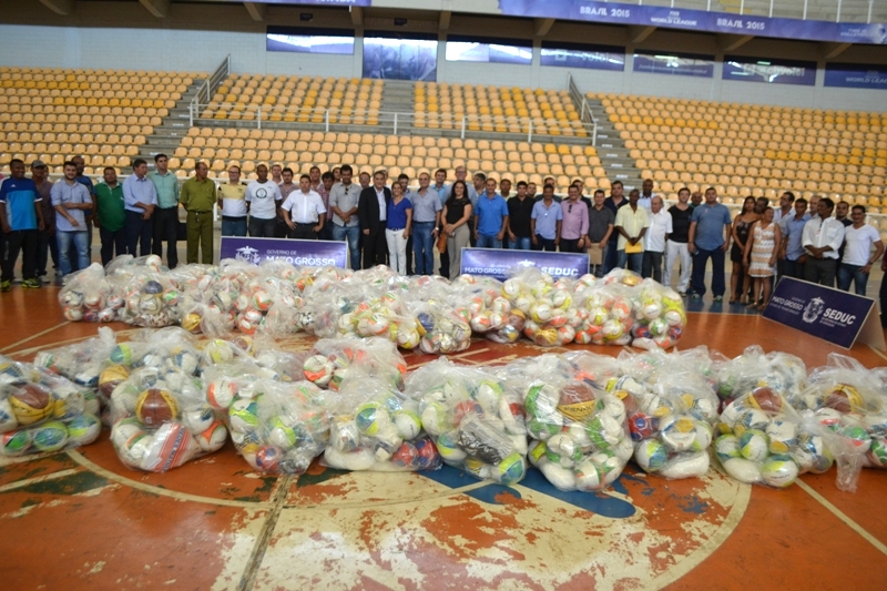O Governo do Estado, por meio da Secretaria Adjunta de Esporte e Lazer, entregou kits esportivos a 66 municípios de Mato Grosso. Os materiais vão auxiliar na realização dos jogos estudantis e de campeonatos amadores. A cerimônia de entrega ocorreu na quinta-feira (17.12), no auditório do Ginásio Aecim Tocantins, e contou a participação de secretários e representantes dos municípios contemplados.