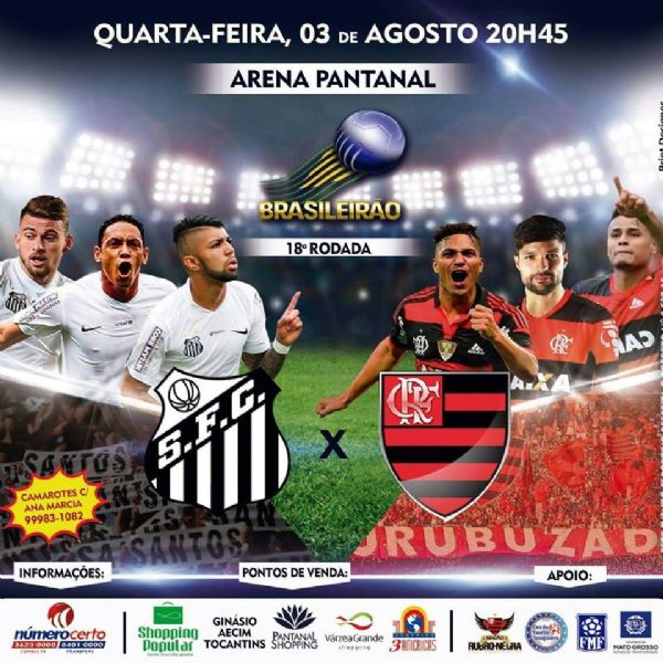 A Confederação Brasileira de Futebol (CBF) confirmou a transferência da partida entre Santos e Flamengo para Cuiabá. O mando de jogo foi ‘comprado’ por um grupo de empresários que resolveu levar o duelo para a Arena Pantanal. O confronto está agendado para o dia 03 de agosto (quarta-feira), às 20h45 (horário de Mato Grosso) e será válido pela 18ª rodada do Campeonato Brasileiro de 2016.