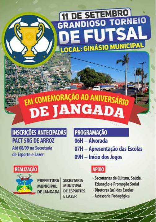 Acontece neste domingo (11) Grandioso Torneio de Futsal em Jangada, inscrições um pacote de arroz de 5 kg