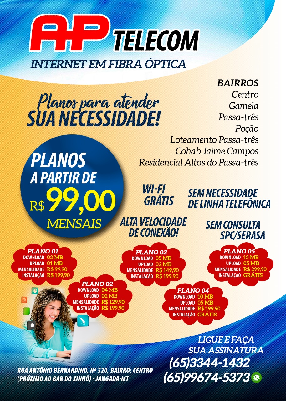 AP TELECOM oferece agora “internet em fibra óptica” mais velocidades em tecnologia em Jangada, confira seus PLANOS