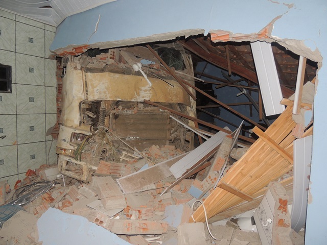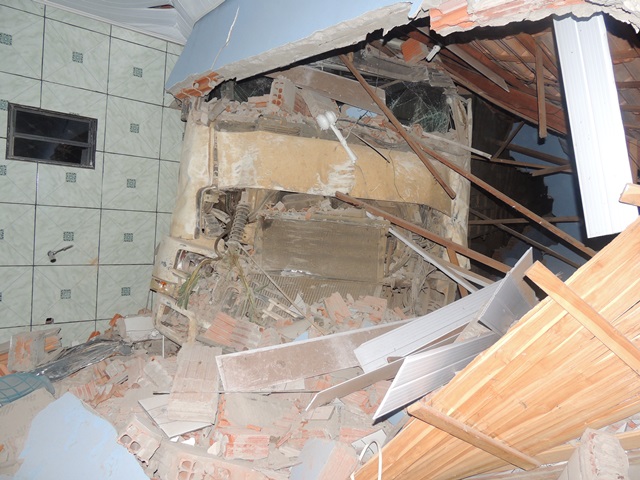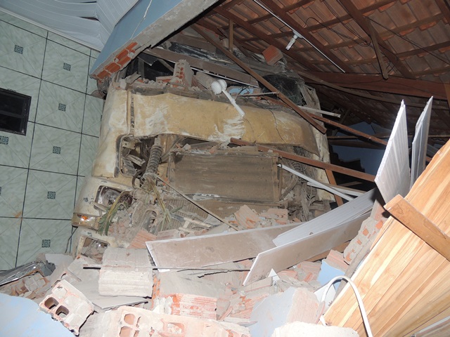 O morador da residência contou que estava muito perto do cômodo que a carreta destruiu. O veículo destruiu uma área da casa, o banheiro e a cozinha. A filha do morador estava no banheiro no momento do acidente, mas não se feriu. Ela ficou apenas com escoriações leves, mas muito traumatizada.