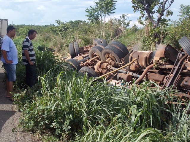 Um motorista (não identificado) ficou preso ás ferragens de uma carreta carregada de madeira, em um acidente que aconteceu na tarde de sábado (30.11), na rodovia BR-163/364, entre Jangada e Várzea Grande.