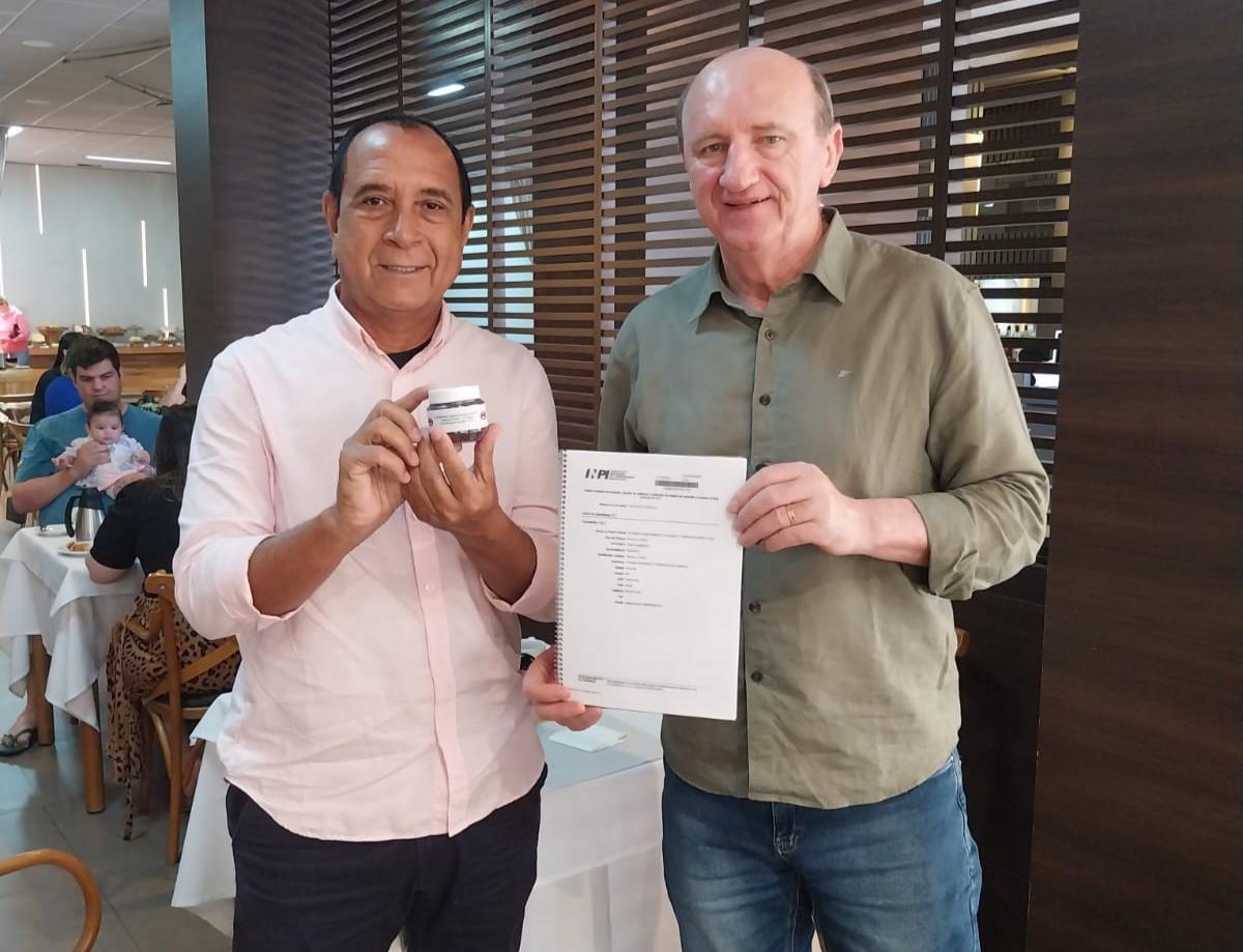 Claudemiro G. Nascimento, diretor técnico da empresa Atalaia, pesquisa em Agrossistema, apresentou para o Neri Geller, Secretário de Política Agrícola, do Governo Lula, o adubo organomineral de pó de serra de madeira.