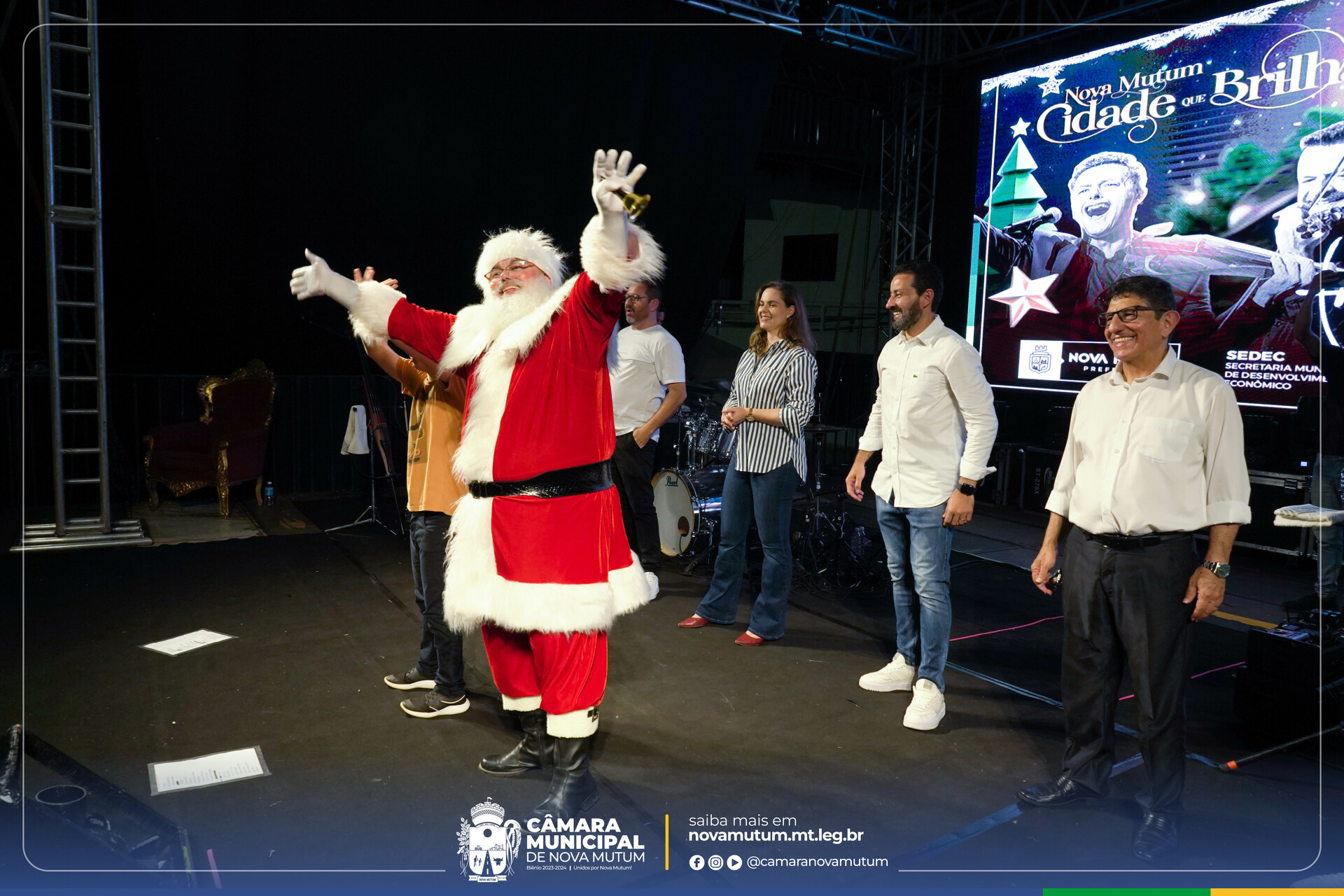 Iniciando as comemorações de fim de ano em Nova Mutum, a chegada do Papai Noel marca as festividades da data mais comemorada do ano. A recepção do velho Noel, ocorreu na noite desta quinta-feira (21), com uma programação especial em frente ao Ginásio Lauro Immich.