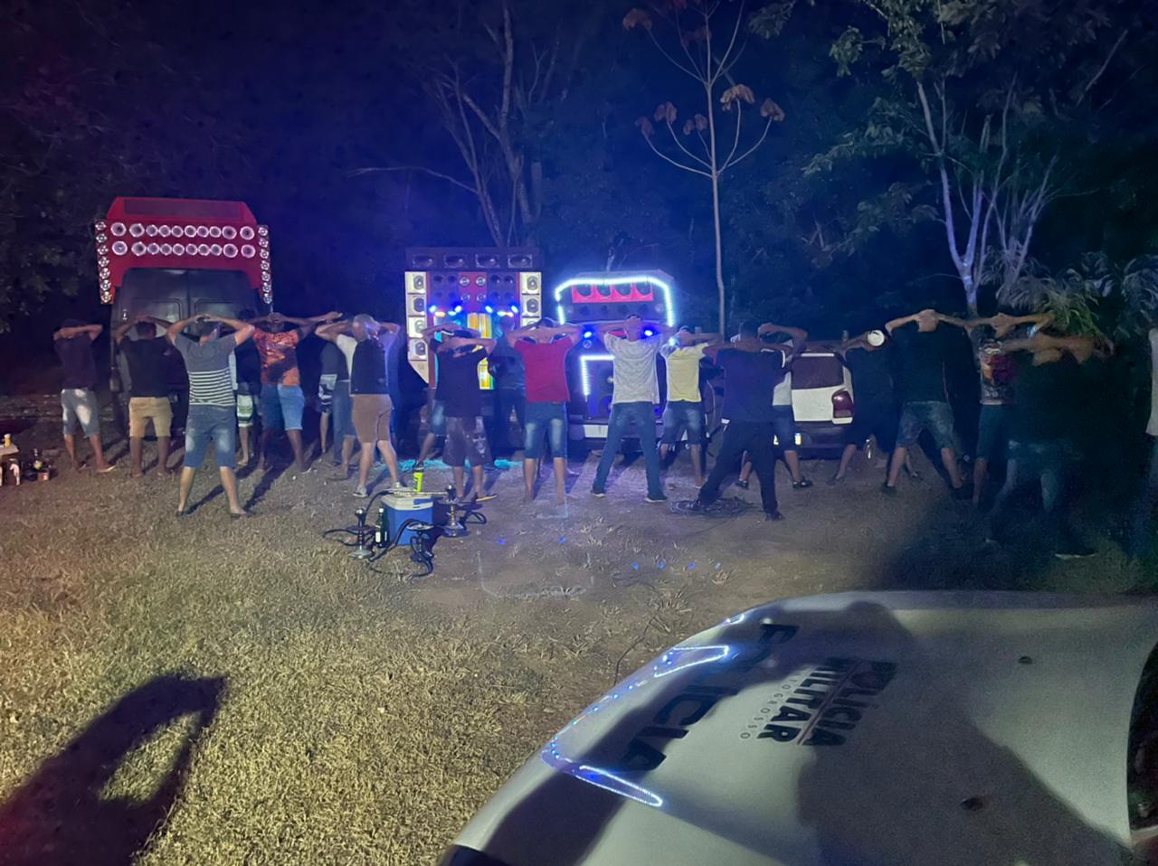 O grupo fazia consumo de bebidas alcoólicas e ao presenciarem a chegada da PM, alguns participantes correram para a mata tomando rumo ignorado.