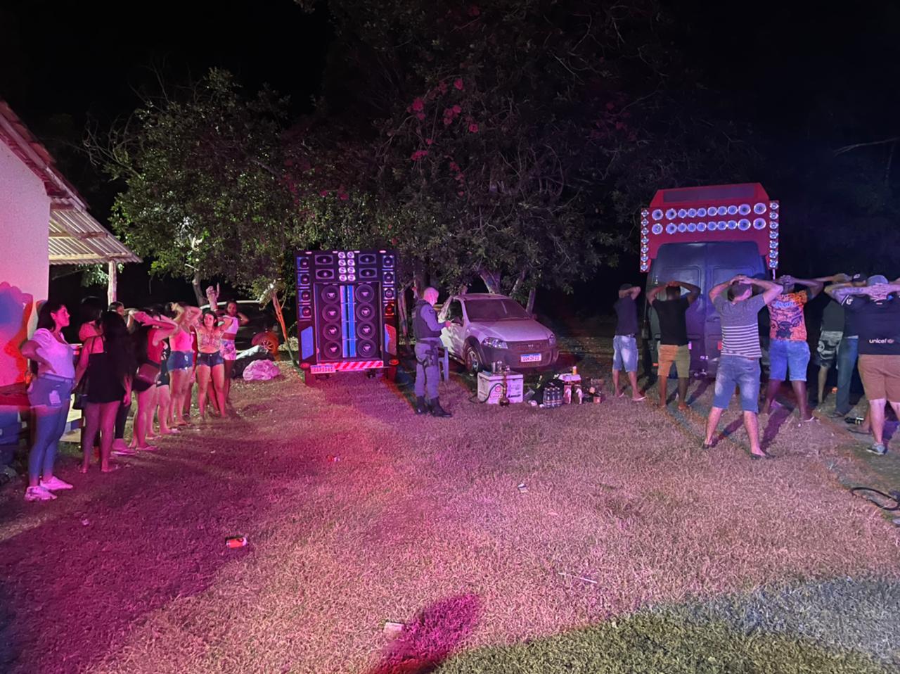 Policiais Militares do 7º BPM que trabalham no município de Jangada foram acionados na noite do dia 15/05/2021, por volta das 23h30min., para verificar uma festa clandestina com som automotivo e bebidas alcoólicas que estava acontecendo na Comunidade do Vaquejador.