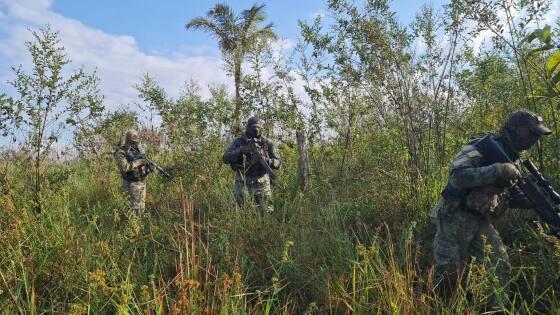 Franklis portava um fuzil Ruger Cal 5.56, munições de variados calibres, rede, mochila, rádio de comunicação e colete balístico.