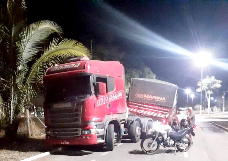 No início da noite desta terça-feira (10) a Polícia Militar foi informada por uma testemunha de que havia um caminhão Scania de cor vermelha na Avenida das Palmeiras com o reboque parcialmente engatado.