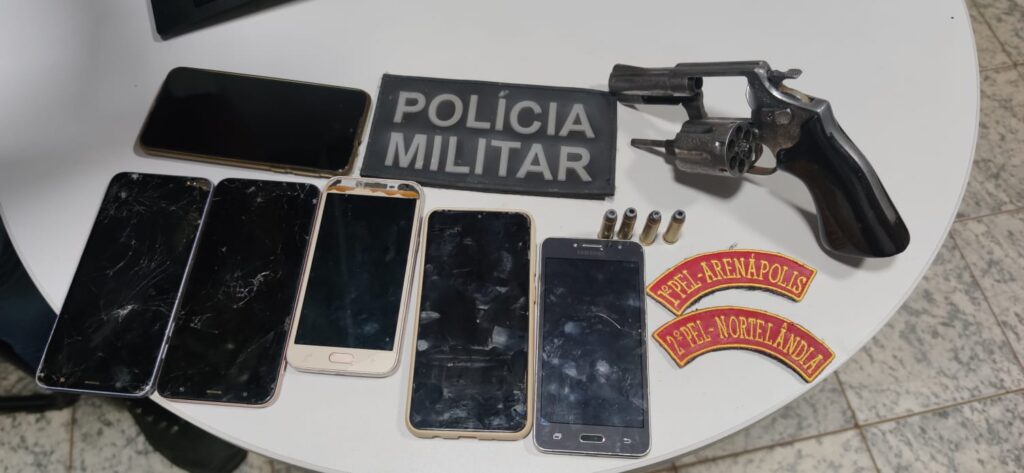 Mediante o risco de vida iminente das vítimas a polícia entrou na residência onde encontrou o suspeito de iniciais R.J.D.S- 24, segurando em uma das mãos um revolver calibre 38 apontando para as vítimas que estavam deitadas no chão e que o suspeito ao perceber a presença da Polícia Militar soltou a arma no chão e tentou fugir pela lateral da residência onde reagiu a prisão ferindo a mão direita de um dos policiais.