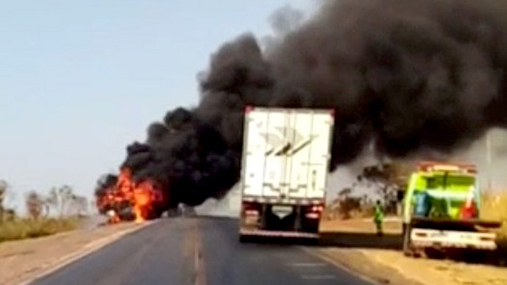 Um veículo de carga (marca e modelo ainda não informados) pegou fogo, na manhã desta quarta-feira (25), no quilômetro 536 da BR-364, na região de Rosário Oeste. Conforme a assessoria da concessionária que administra a via, as chamas atingiram o cavalo mecânico e o primeiro vagão.