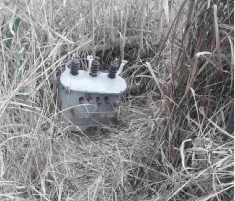 Desconhecidos desparafusam e deixam o transformador cair ao chão para estourar e poder retirar o cobre que hoje está em torno de 32,00 o kilo.