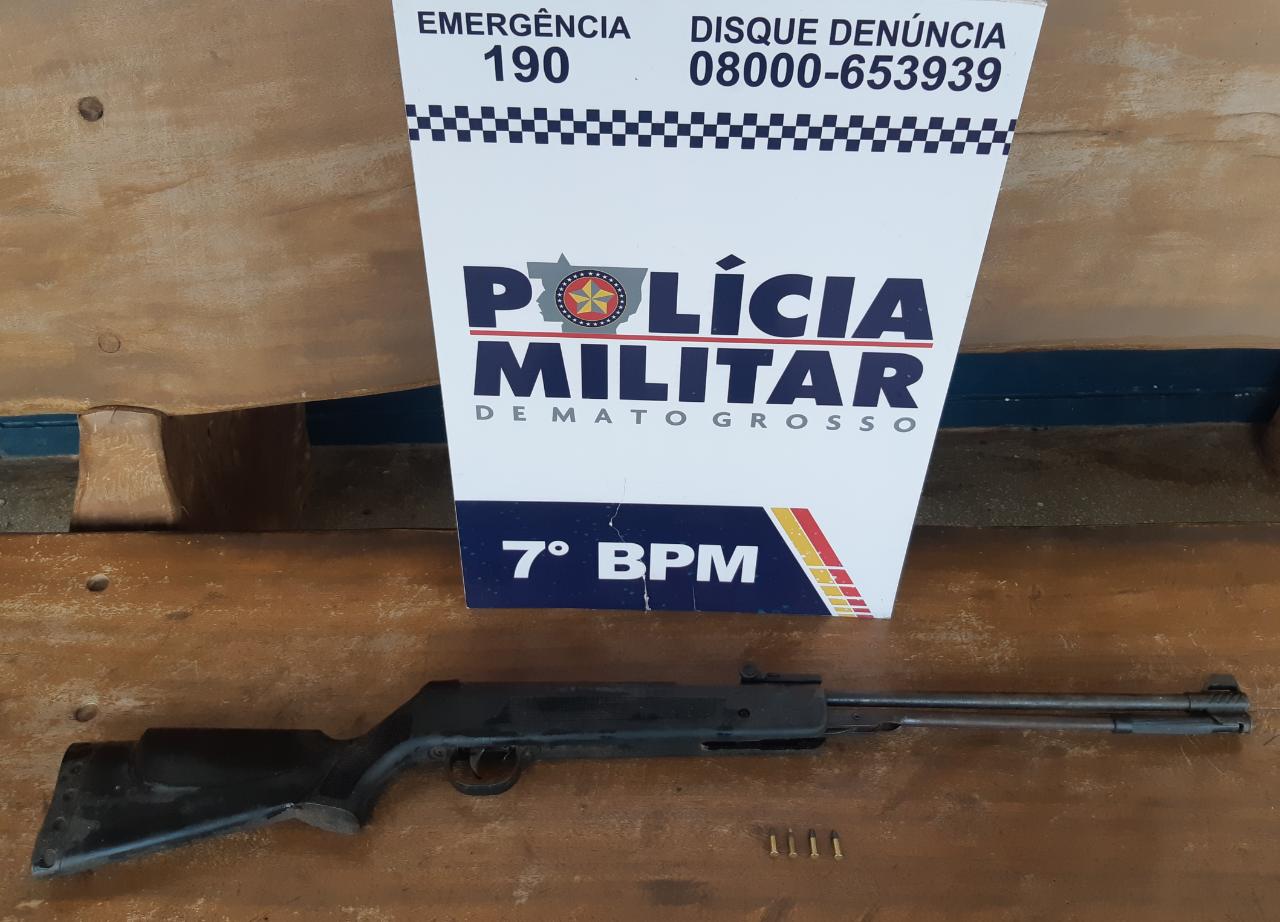 Nesse dia (17), policiais militares do 7º BPM receberam informes que na região da Passagem do Chiqueiro, em zona rural de Rosário Oeste havia um indivíduo ameaçando a vizinhança com uma espingarda.