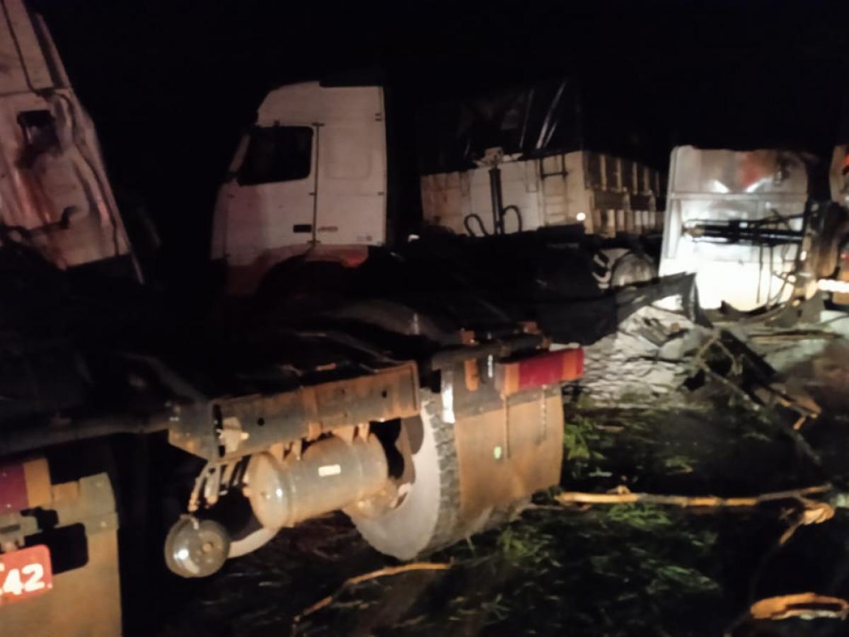 Acidente envolvendo dois veículos de carga, na madrugada desta quinta-feira (18), resultou no bloqueio total da BR-364, no km 490, em Jangada (80 km ao Norte de Cuiabá). Concessionária Rota do Oeste informou que houve um dos veículos tombou e houve ‘derramamento de carga de produto perigoso na pista’.