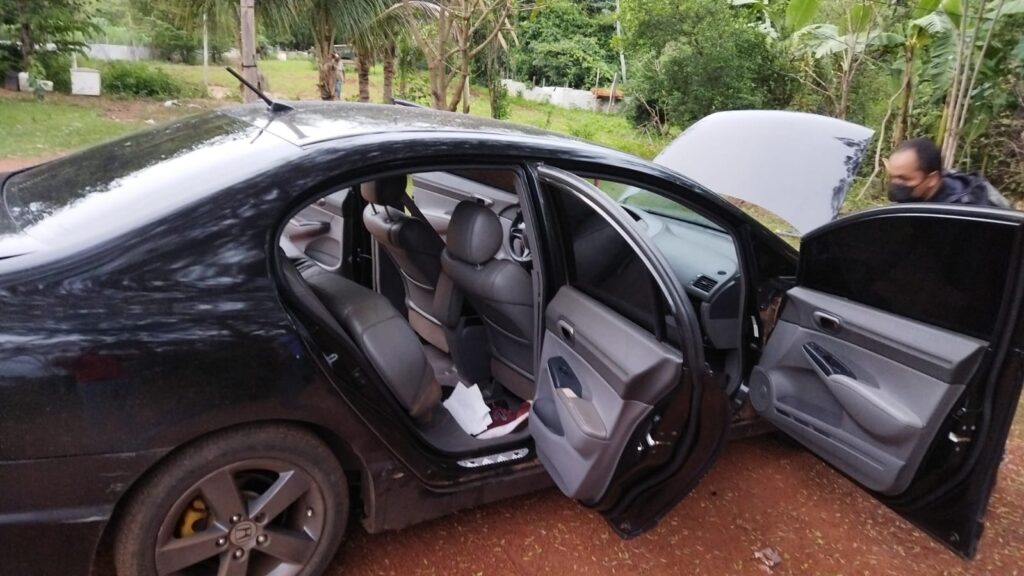 Com outras informações apuradas, a equipe seguiu até uma região de chácaras e localizou o Civic, sem a chave. O proprietário da chácara afirmou não conhecer a situação do veículo que estava na propriedade.