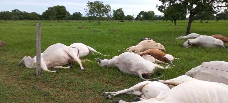 A queda de um raio em um sítio localizado no assentamento Ema, em Alto Paraguai (MT), a 219 km de Cuiabá, matou 15 cabeças de gado que estavam no pasto, nesse domingo (5).