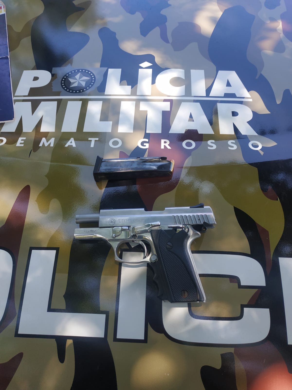 Durante a busca no veículo ainda foi encontrada uma arma de fogo, tipo Pistola, marca Taurus, modelo PT-938, calibre 380 com um carregador com 14 munições do referido calibre.