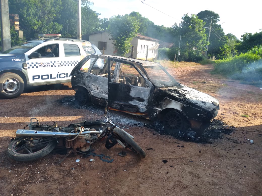 Policiais Militares do 7º BPM foram Informados via 190 que um individuo teria incendiado um carro e uma moto que seria de propriedade seu padrasto no local conhecido como Porteirão, que fica próximo ao Bairro Aeroporto, em Rosário Oeste.
