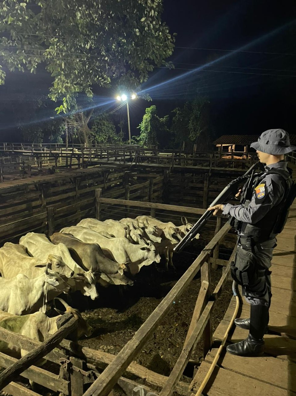 Segundo a polícia, o motorista apresentou guias de transporte animal de números irregulares e não apresentou nota fiscal sobre o transporte do gado.