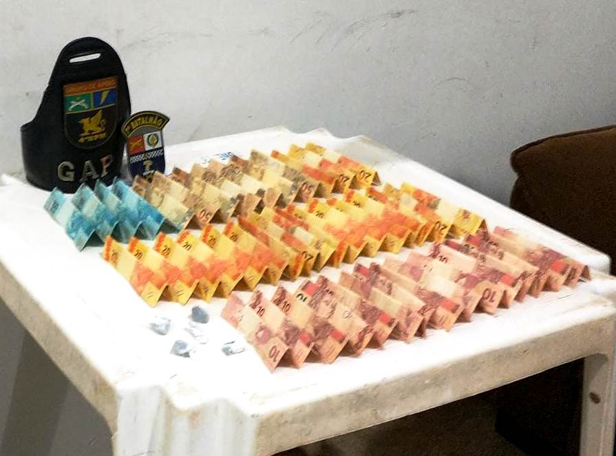 Os policiais ainda localizaram R$ 1.000,00 reais que estavam escondidos no quintal da residência.