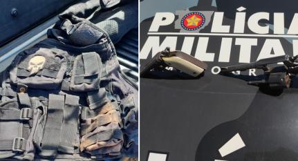 No local do confronto, os militares localizaram um colete balístico, duas armas, uma balança de precisão e maconha. Na delegacia, um registro policial foi lavrado enquanto os policiais seguem no encalço do suspeito foragido.