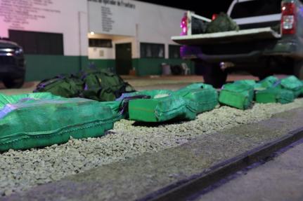 A ocorrência foi registrada por volta das 2h30 da manhã, no momento em que agentes de fronteira realizavam patrulhamento próximo à região do Laranjal, e avistaram 8 pessoas andando a pé transportando sacos semelhantes a cargas de drogas. Ao notarem a presença da equipe, os suspeitos jogaram os sacos ao solo e correram para dentro da mata.