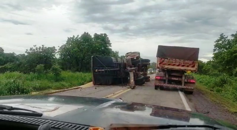 A Concessionária Rota do Oeste registrou o tombamento de uma carreta Mercedes Benz AXSOR, de cor prata, na manhã desta quinta-feira (12/01/2023) no KM 523 da BR-364, no município de Rosário Oeste (103 quilômetros de Cuiabá).