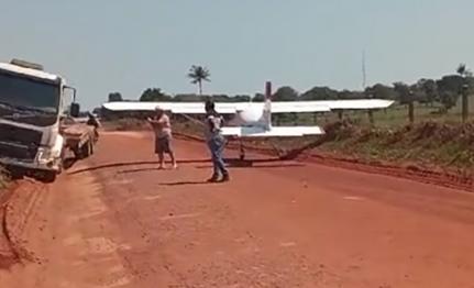 Um avião de pequeno porte fez um pouso de emergência na MT-338, no distrito de Águas Claras, em Juara (709 km a médio-norte de Cuiabá), no começo da tarde desta quarta-feira (18).